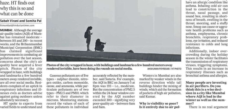 Respirer Reports in The TImes of India (Mumbai edition), December 1, 2023.